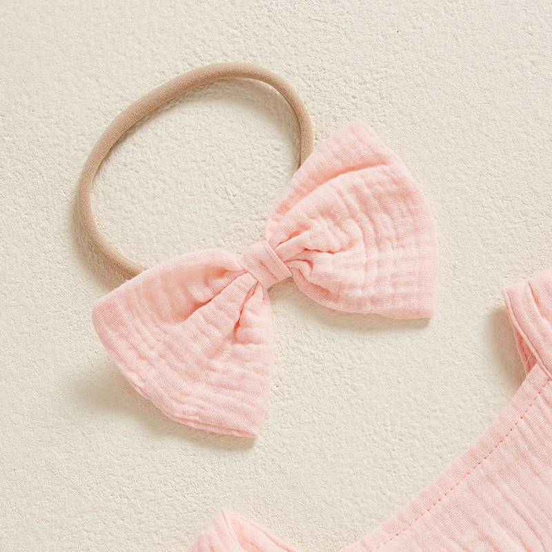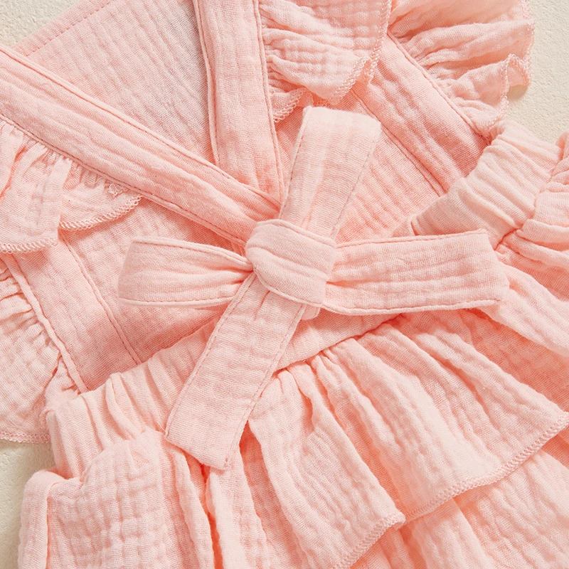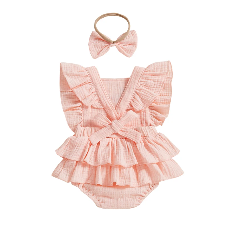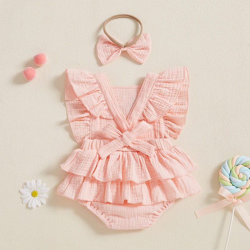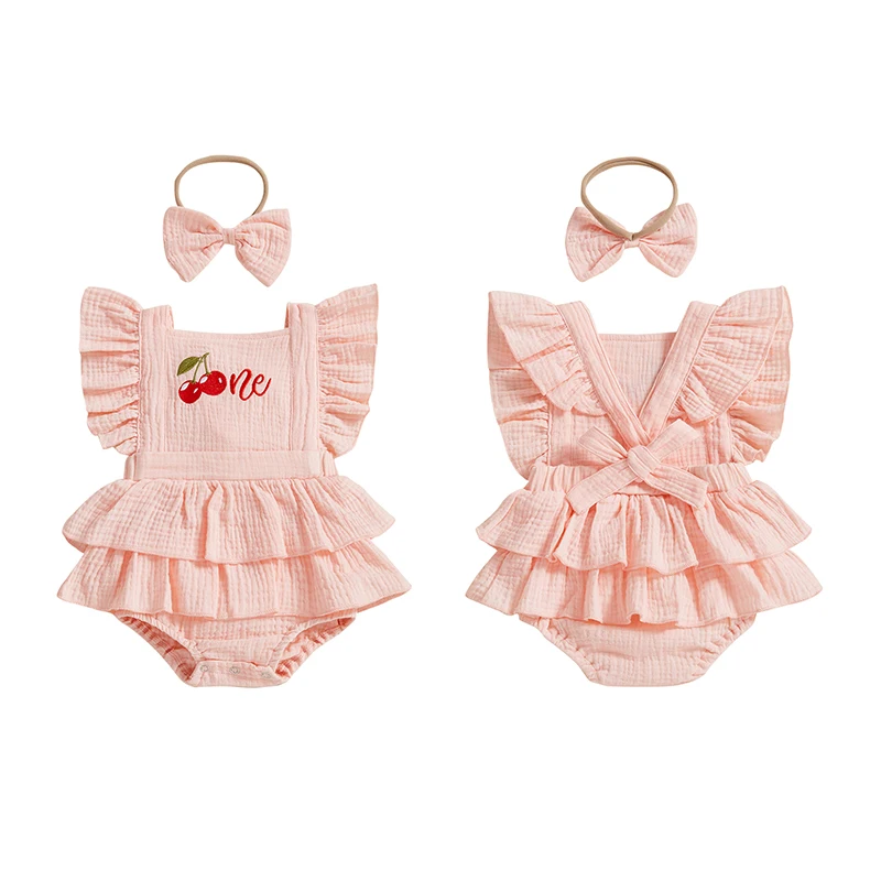 Baby Girl Summer Outfits Ruffle Sleeveless Strawberry Embroidery Romper with Headband Set Newborn Clothes