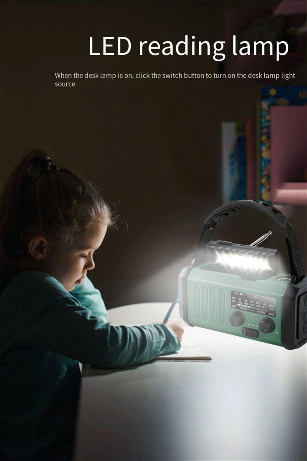 | Running time | Flashlight>70 hours. Desk lamp>70 hours. Radio>80 hours |