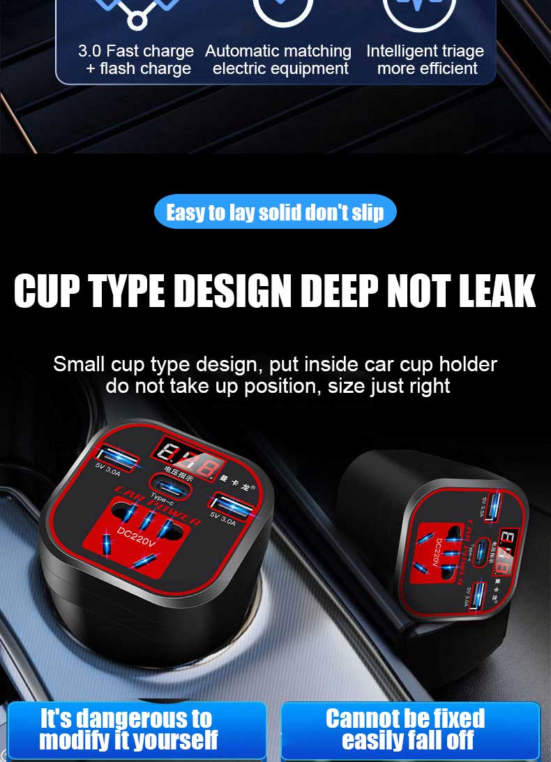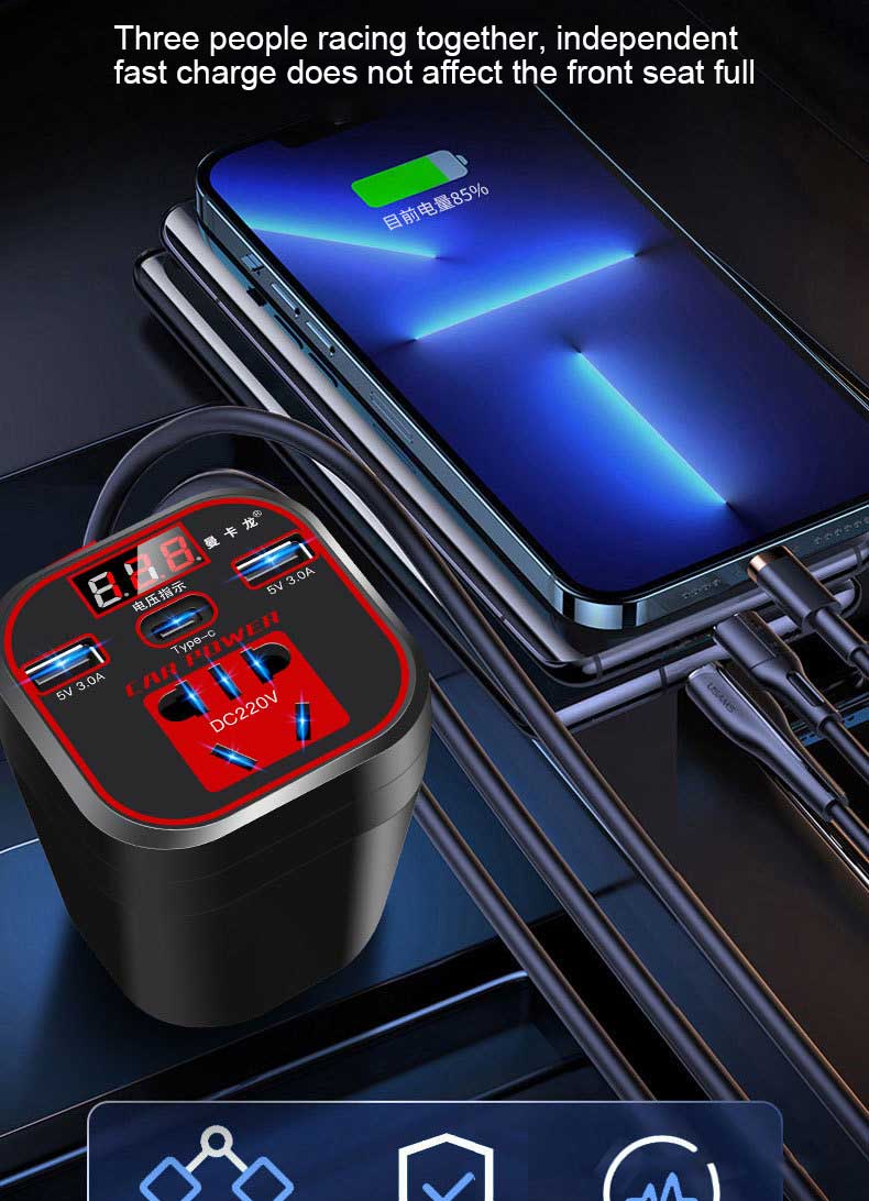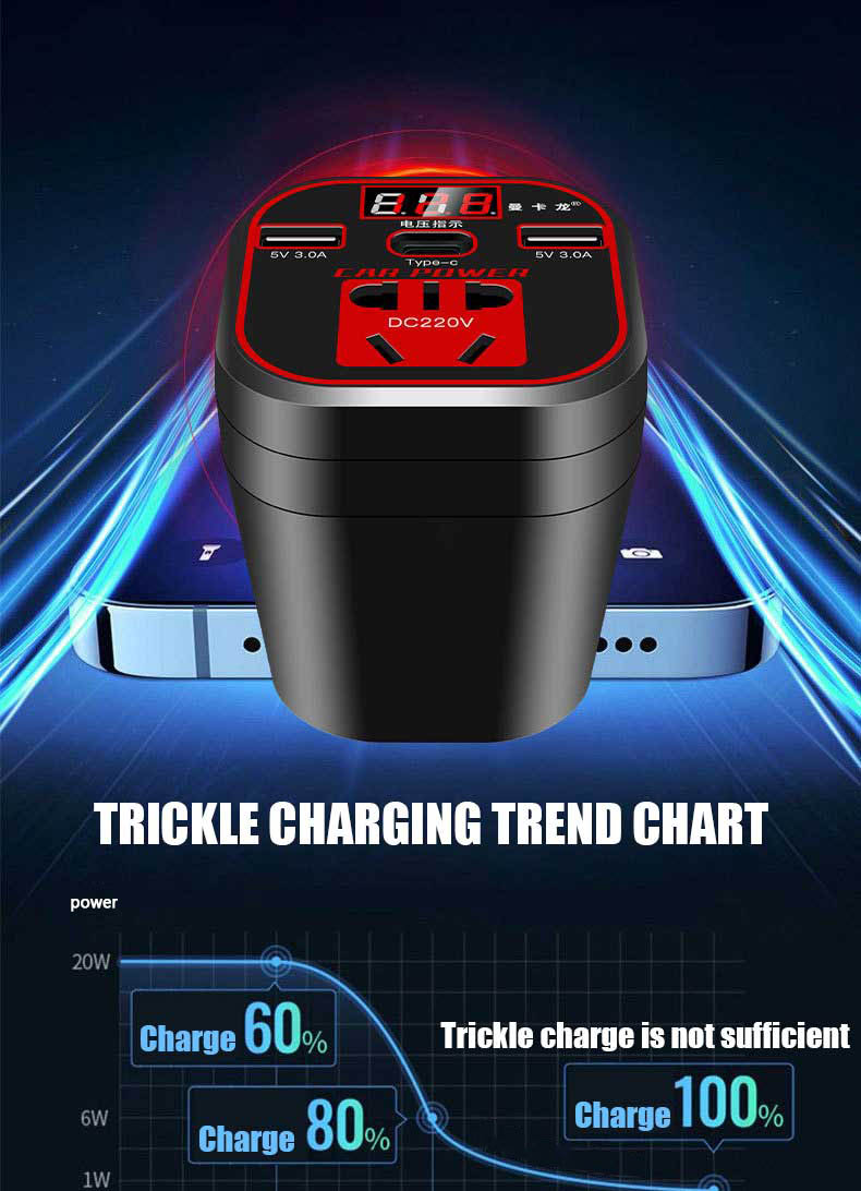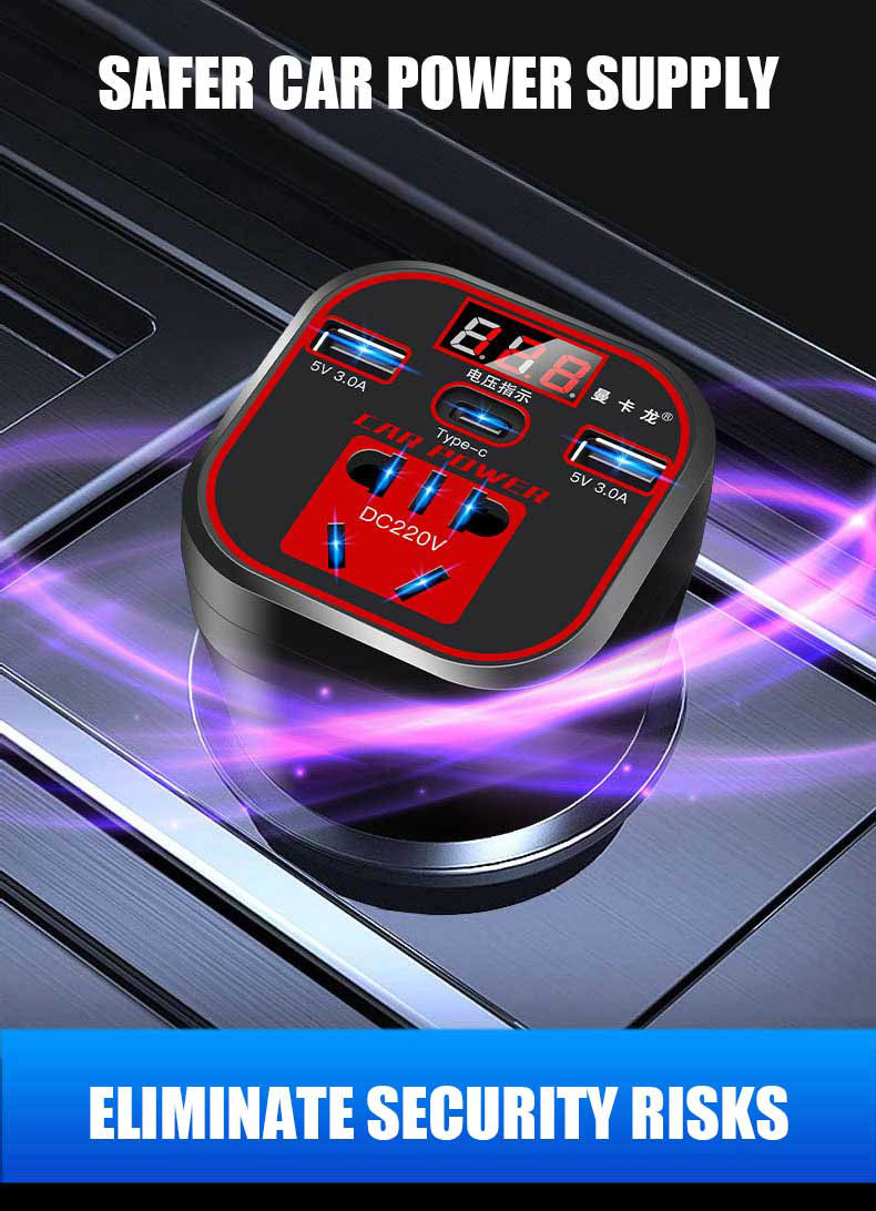 1. 3.0 Fast Charge +Type-C: This car inverter supports fast charging capabilities and also includes a Type-C port for efficient charging.