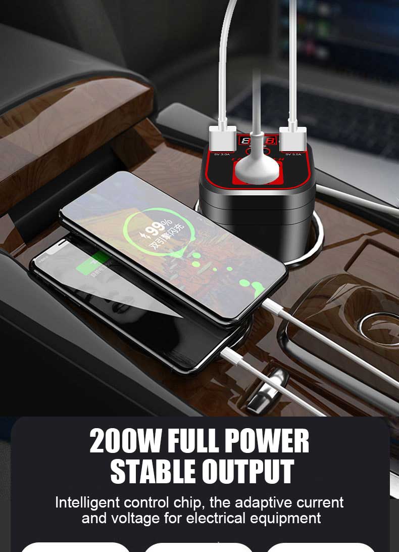 5. 200W Full Power Stable Output: With a stable power output of 200W, this car inverter provides reliable and uninterrupted power supply to connected devices.