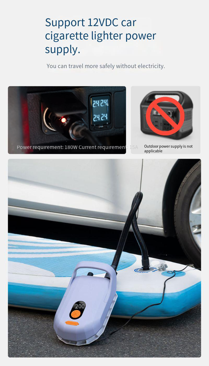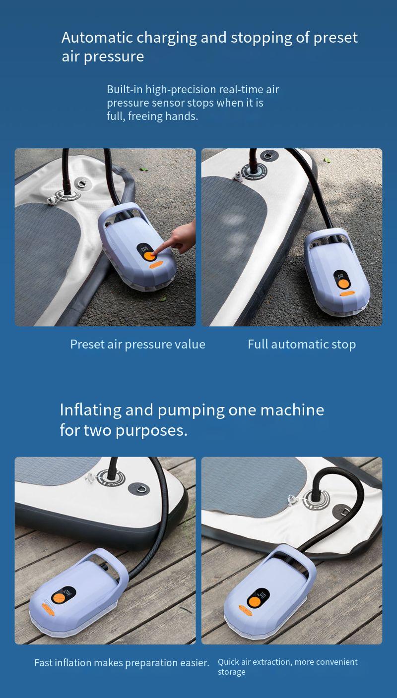5. Automatic Stop Function: The Inflatable Pump is designed with an automatic stop feature that halts the inflation process when the desired pressure level is reached, preventing over-inflation and damage to your belongings.