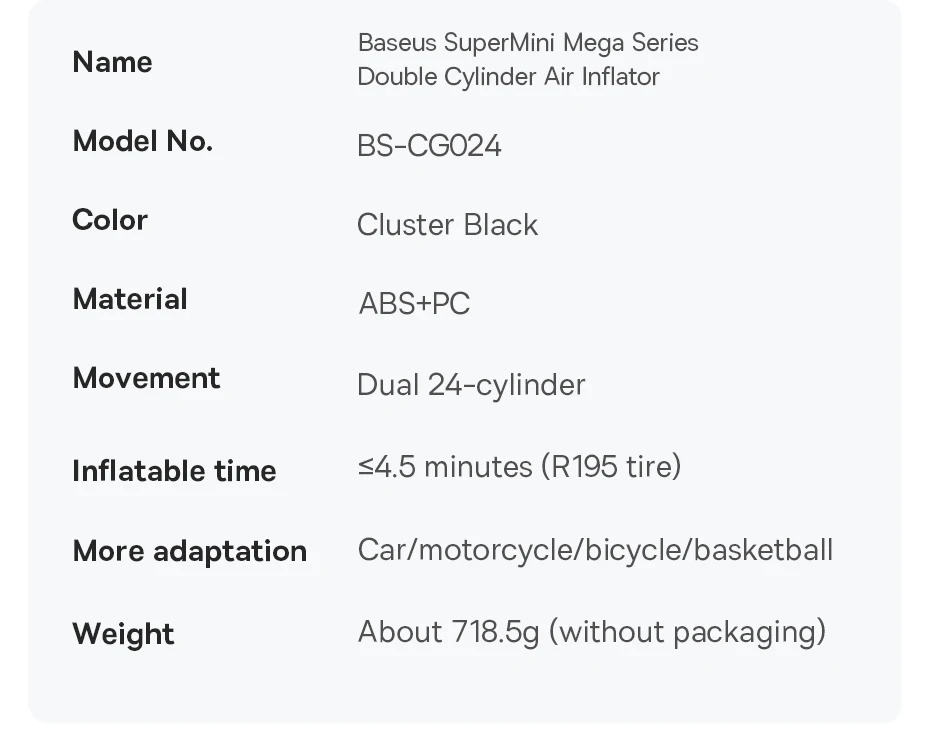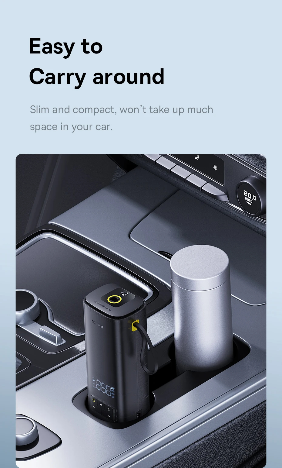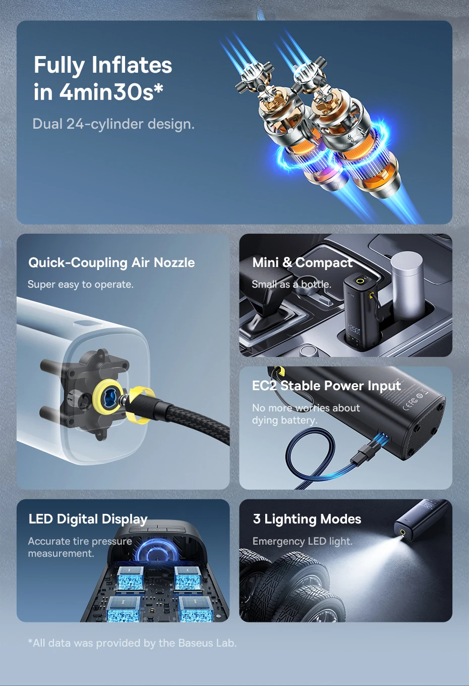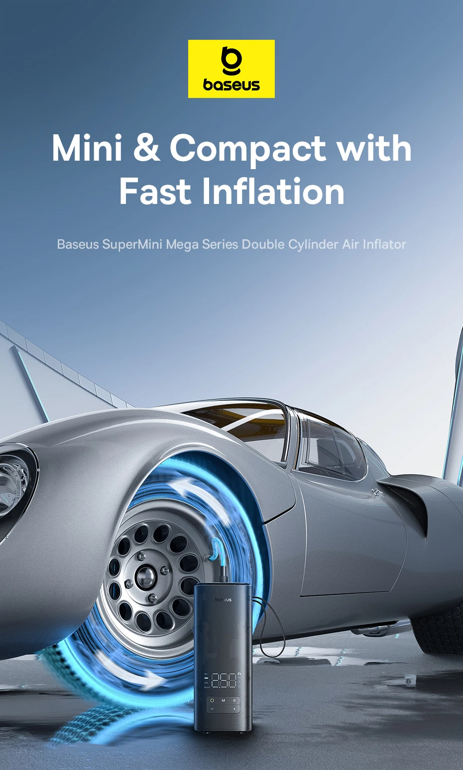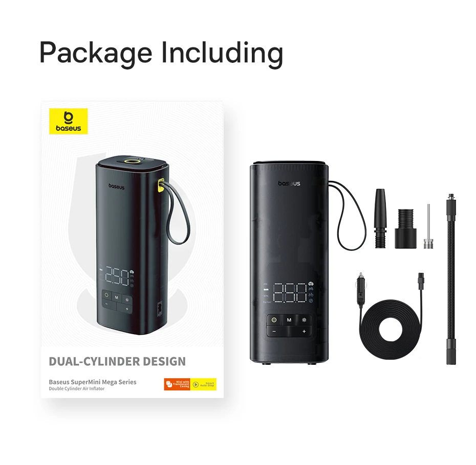Baseus Tire Inflator Air Compressor Dual-Cylinder- Air Pump for Car Tires – One Click Smart Pump Tire Inflator for Car, Motorcycle, Bicycle