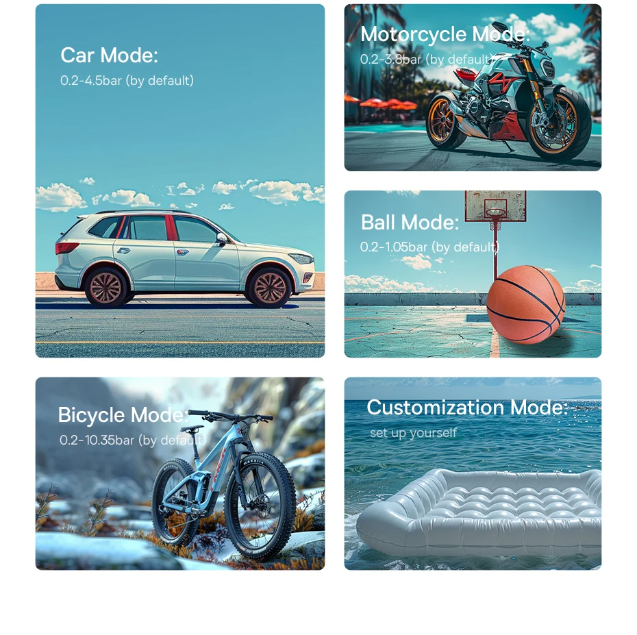 Preset the air pressure for your inflatables, and it will automatically stop when fully inflated.