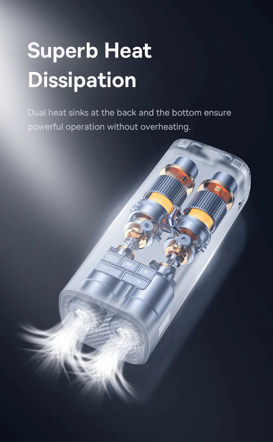 Dual heat sinks at the back and the bottom ensure powerful operation without overheating.