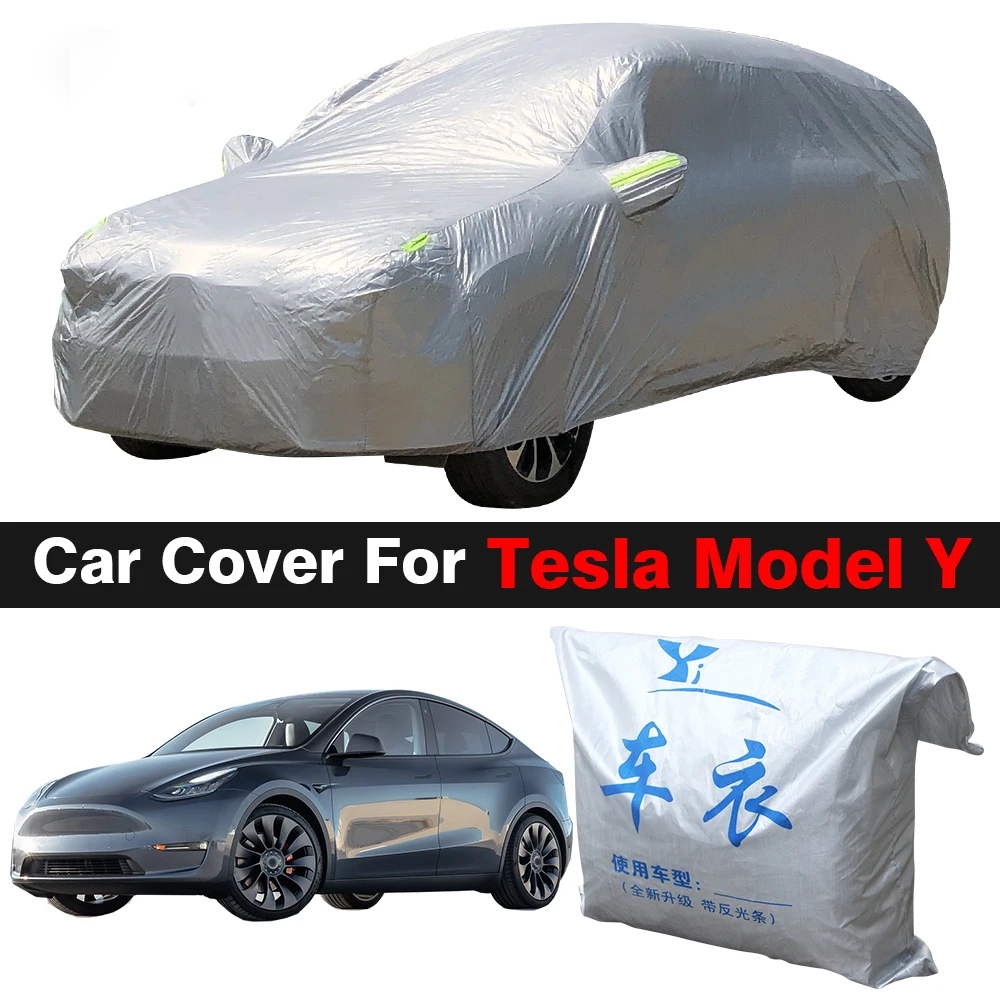 For Tesla Model Y Full Car Cover Anti-UV Sun Rain Snow Wind Dustproof Indoor Outdoor SUV Protection