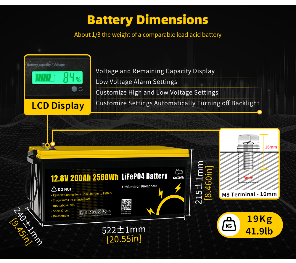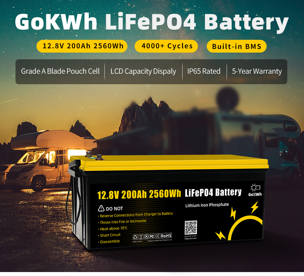 Gokwh 12V 200ah LCD Energy Storage Box 2560Wh Solar Lithium Ion LiFePO4(LFP) Battery for RV Boat Home Energy Storage