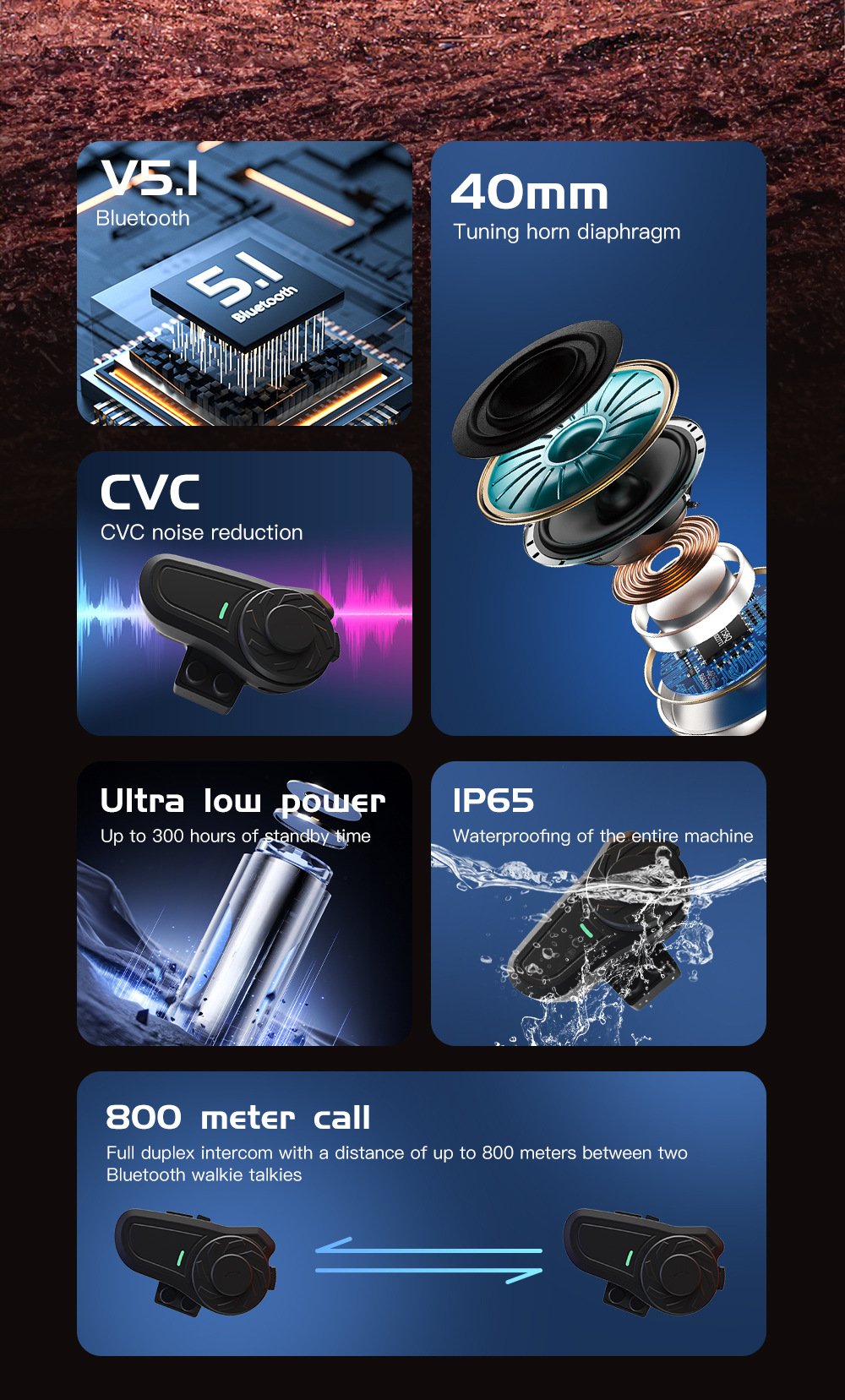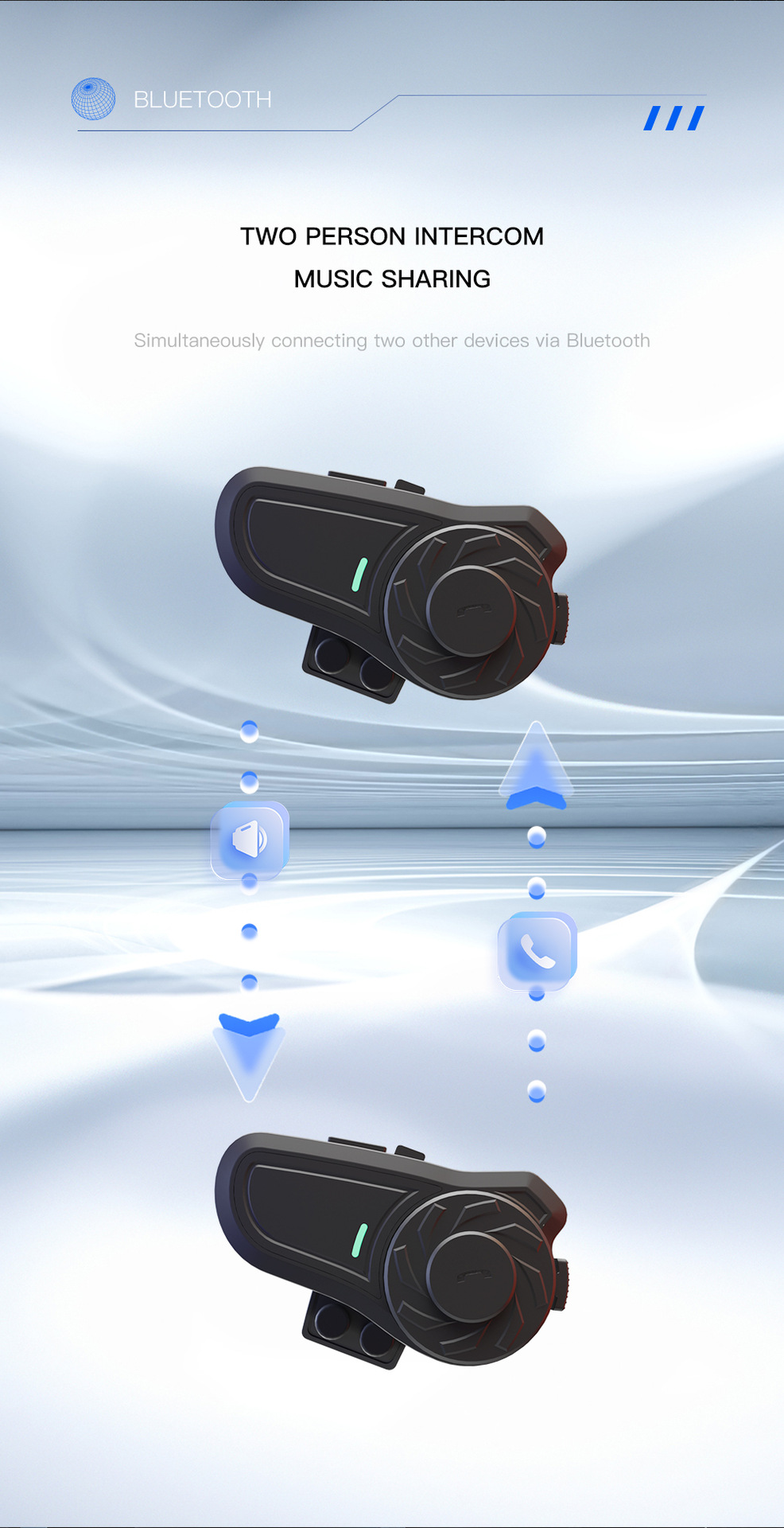 (4) Full duplex intercom with a distance of 800 meters between two Bluetooth