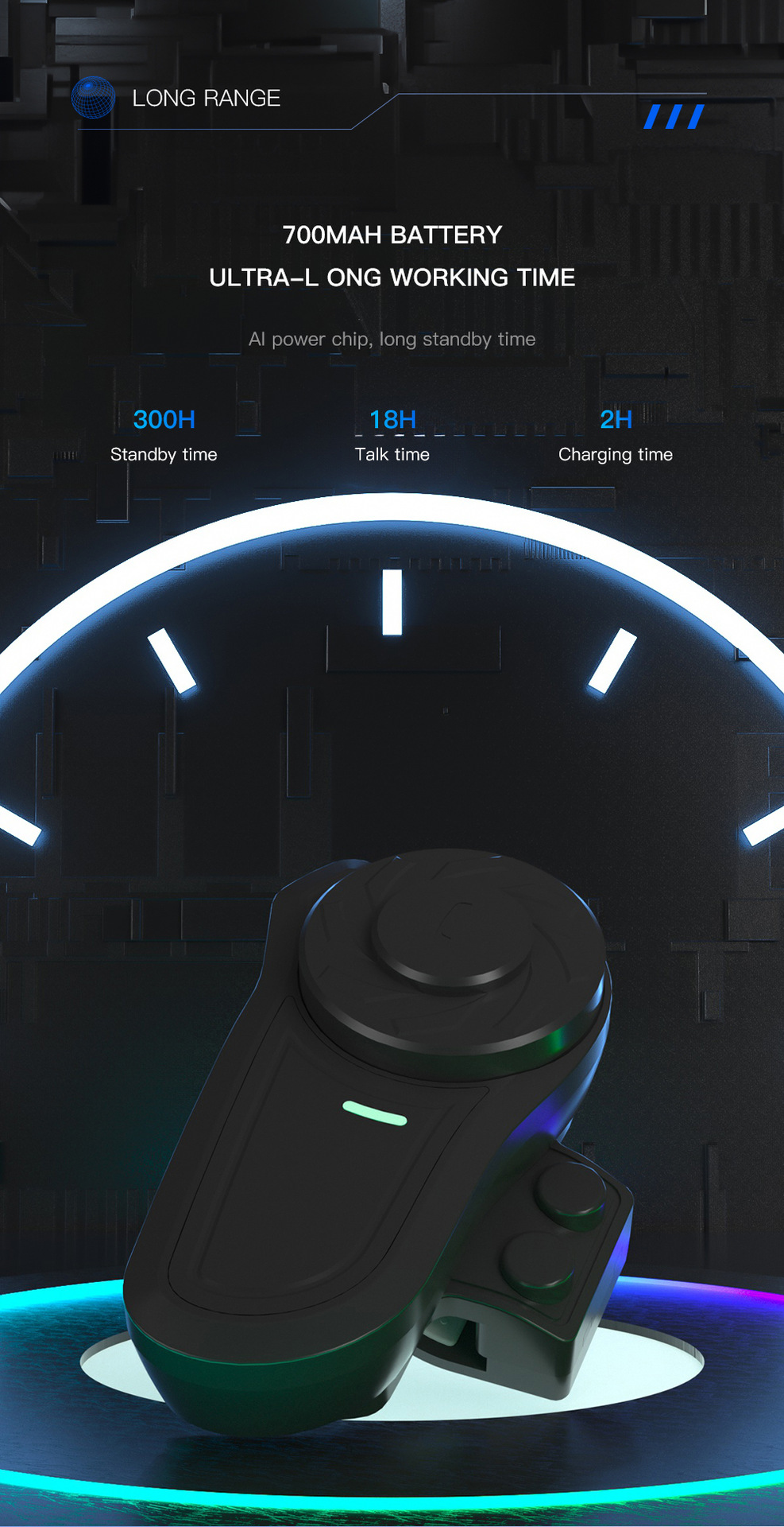 consumption, fast pairing, long working and standby time;