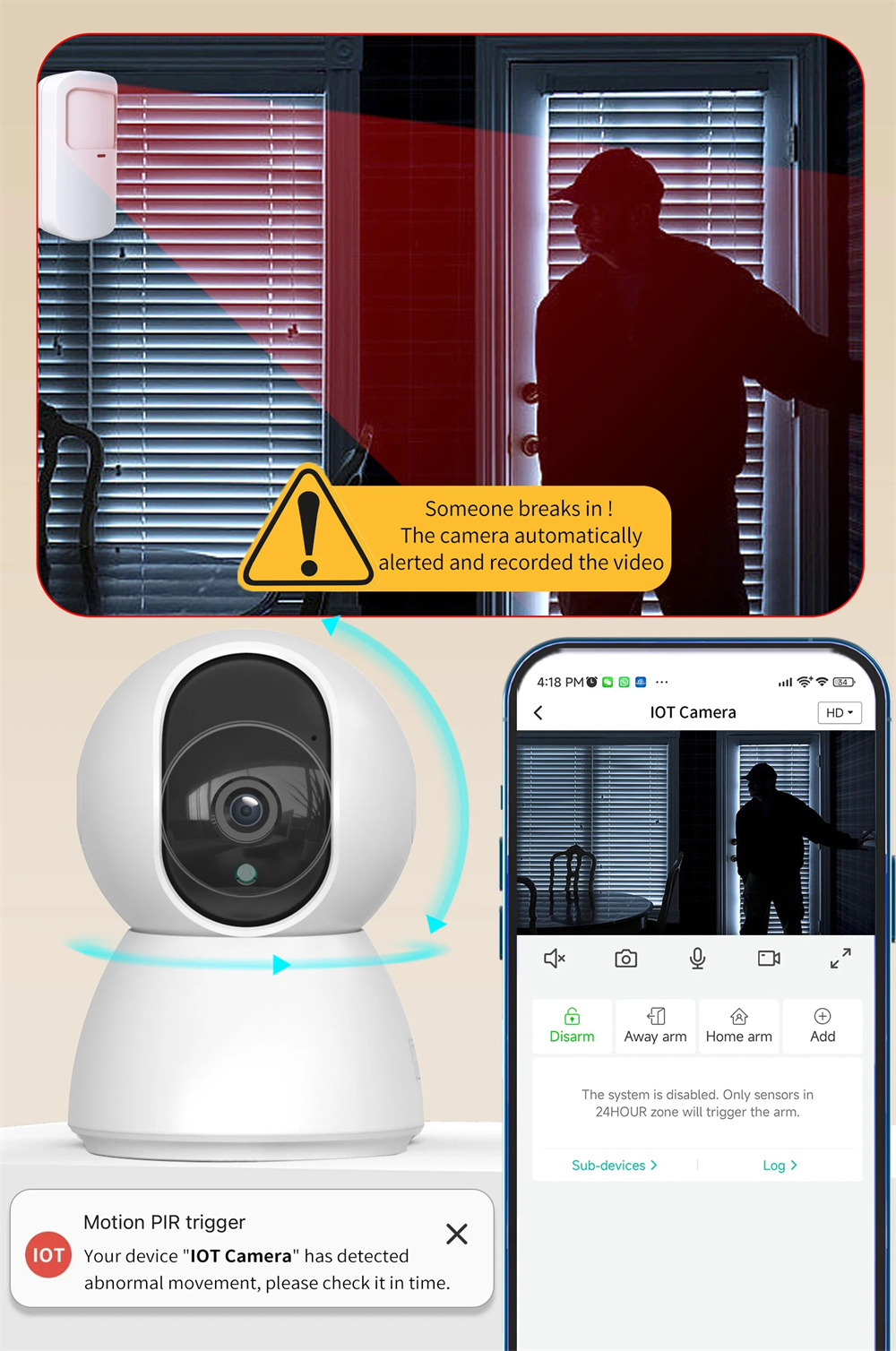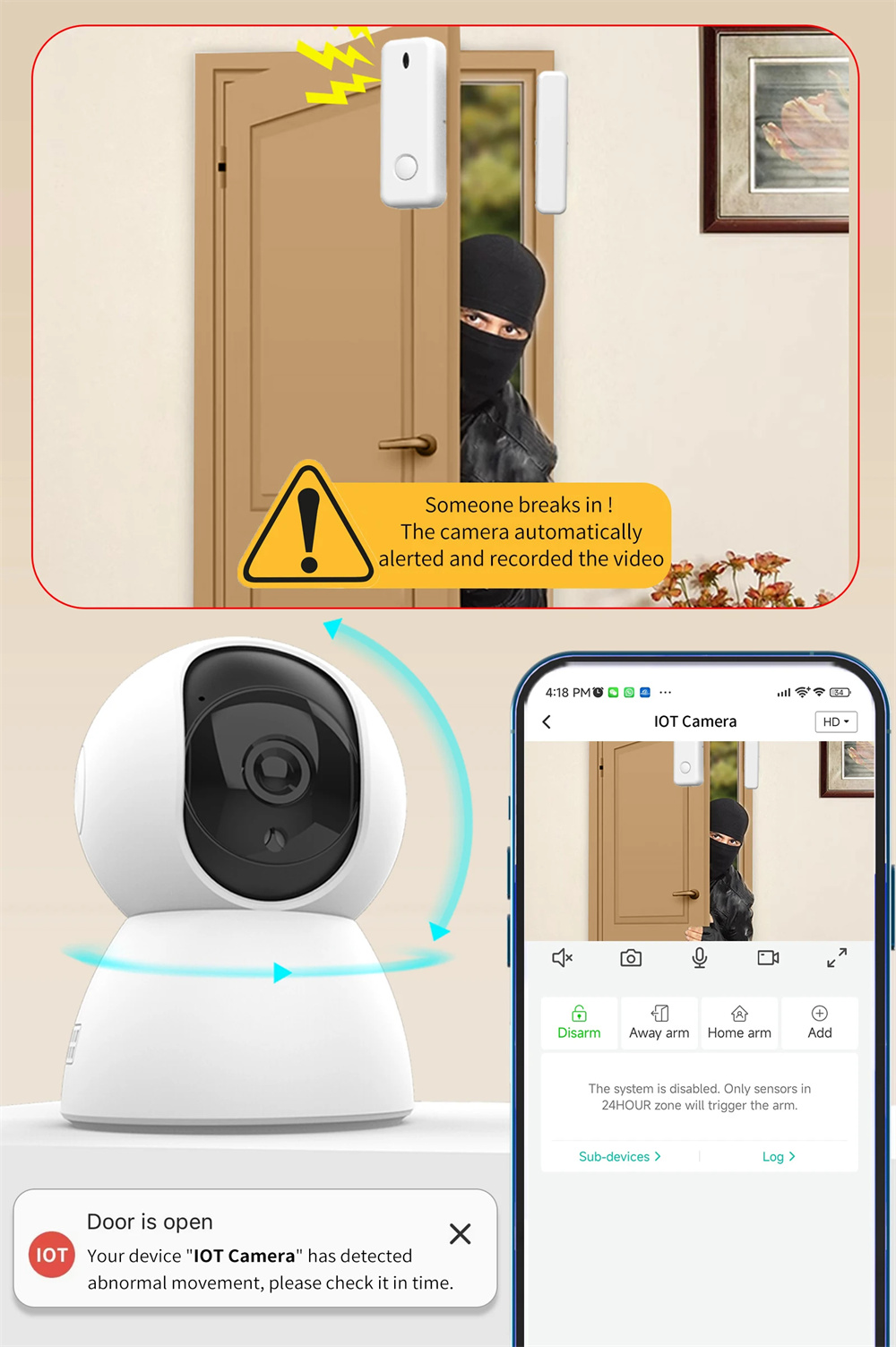 3. Multiple Alarm Sensors Integration: Supports door/window sensors, motion detectors, smoke alarms, gas detectors, and emergency buttons for comprehensive home protection.