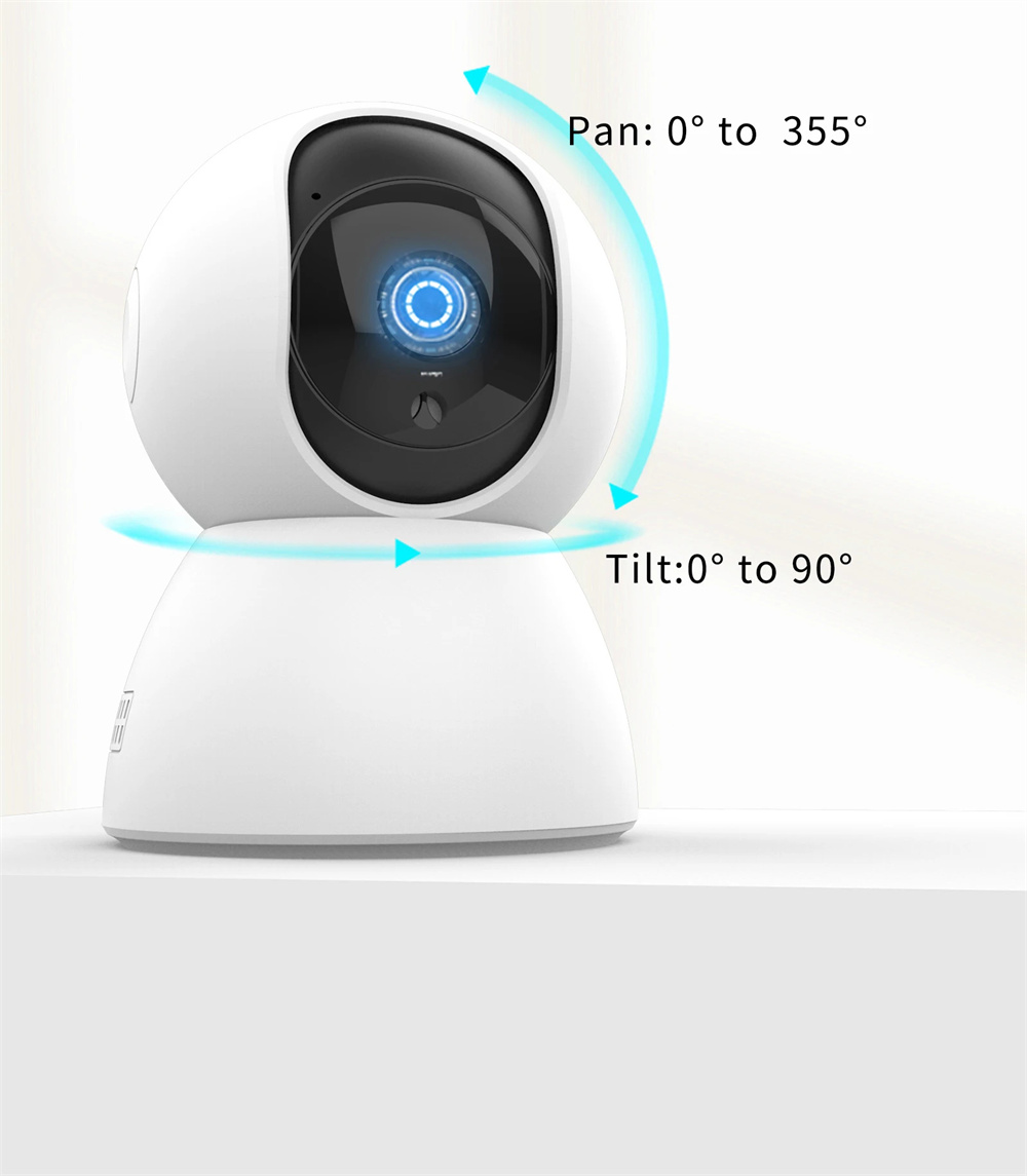 1. 360° Pan-Tilt Design: 355° pan and 90° tilt ensure wide-angle coverage for complete monitoring.