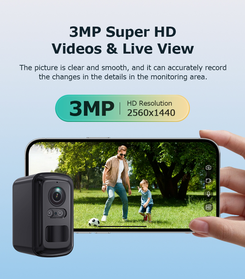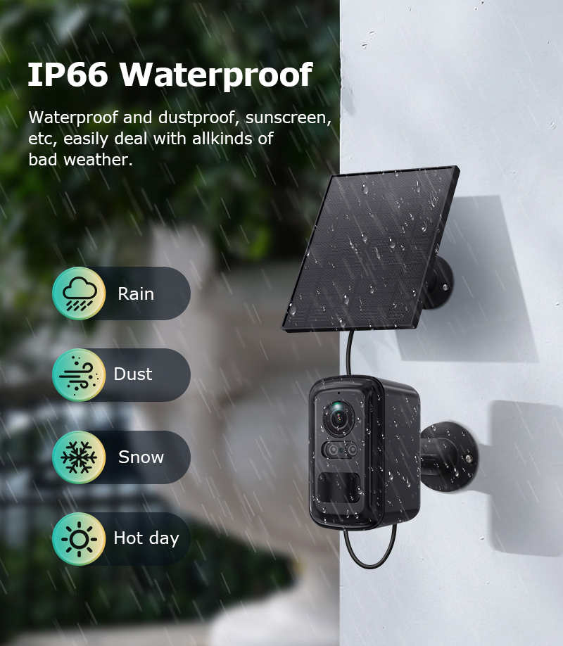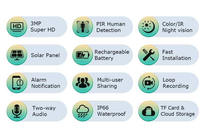 3MP Solar Security Camera Wire-Free Outdoor Camera with Color Night Vision PIR Human Detections 2-Way Audio IP66 Waterproof Solar Powered Wireless Surveillance Camera