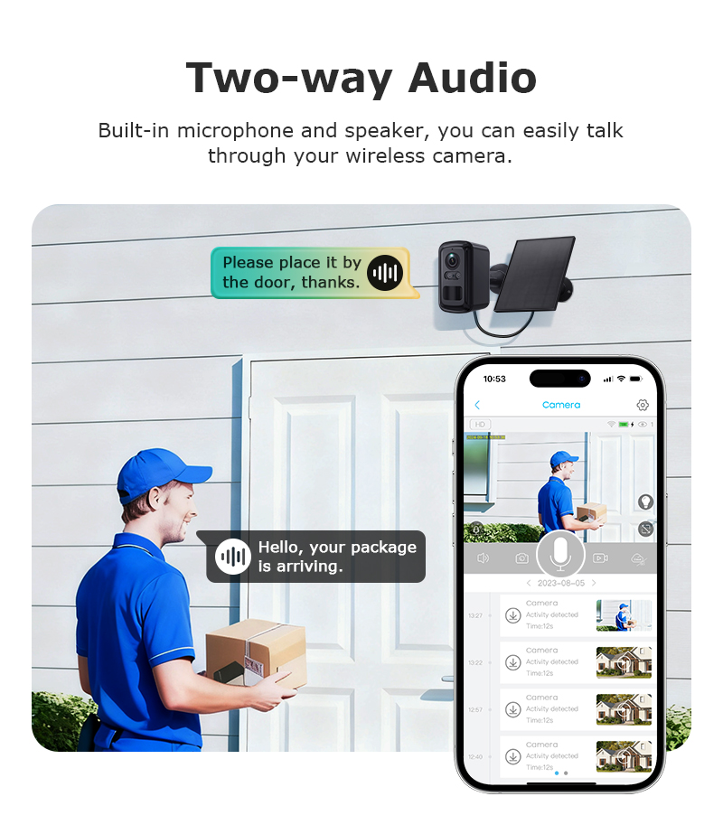 2. Two-Way Audio: Built-in microphone and speaker allowing real-time interaction.