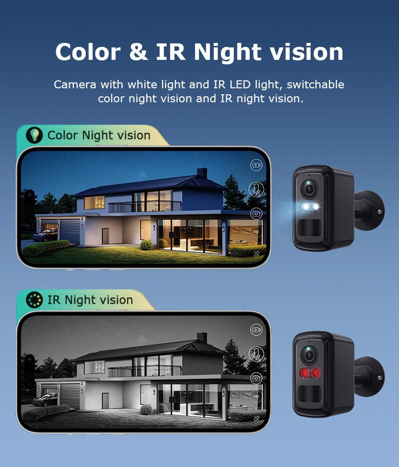 Night Vision: Switch between color and infrared LED night vision