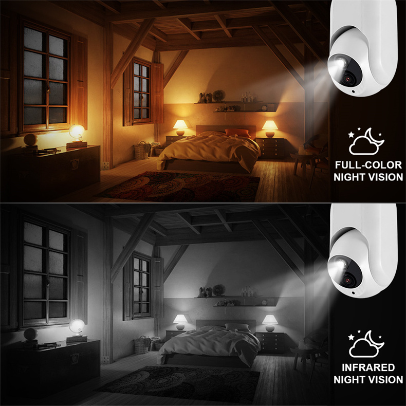 1. Intelligent mode (default): At night, when motion detection is triggered, the white light will be on, and the picture will be in color; when it is not triggered, the picture will be in black and white.